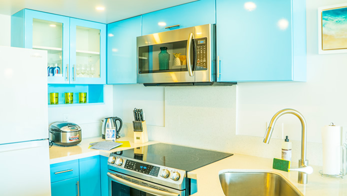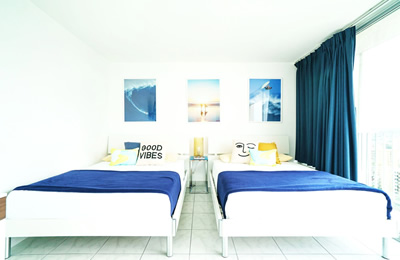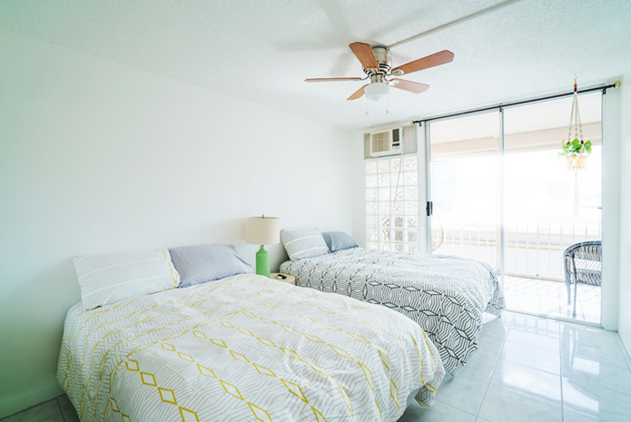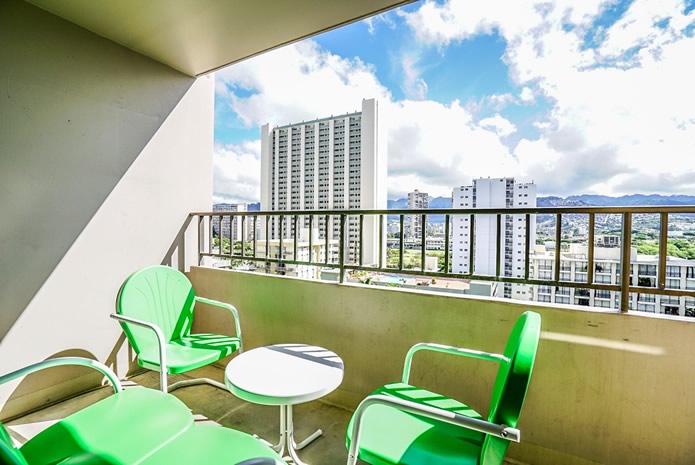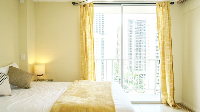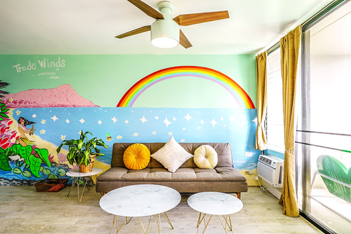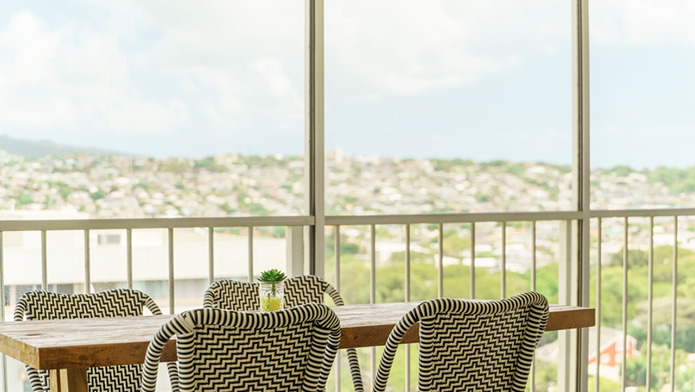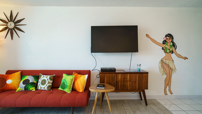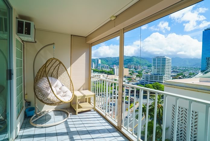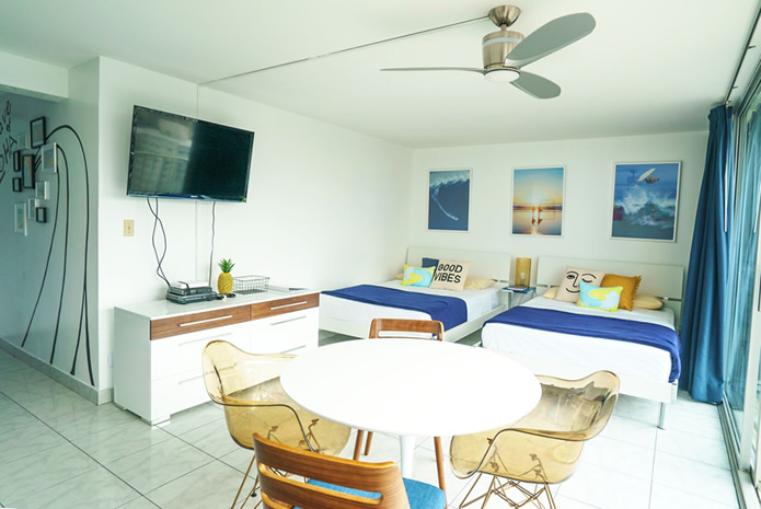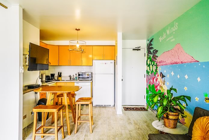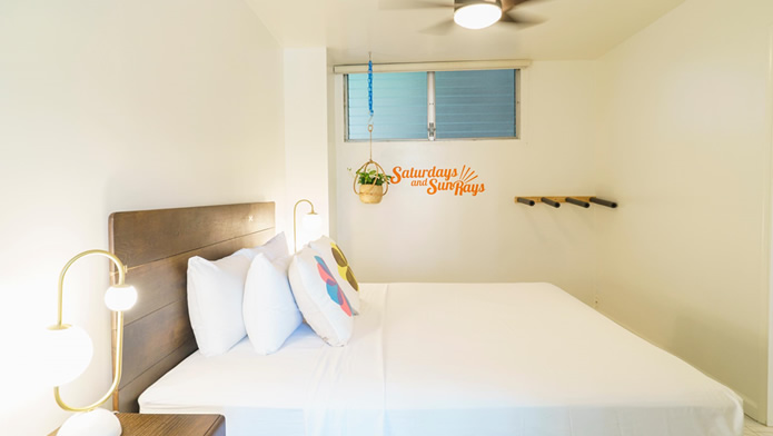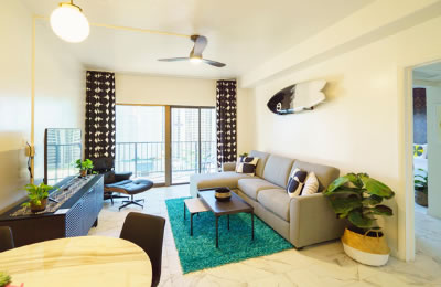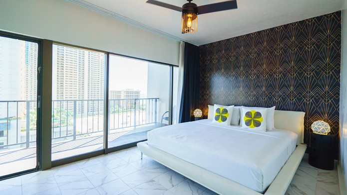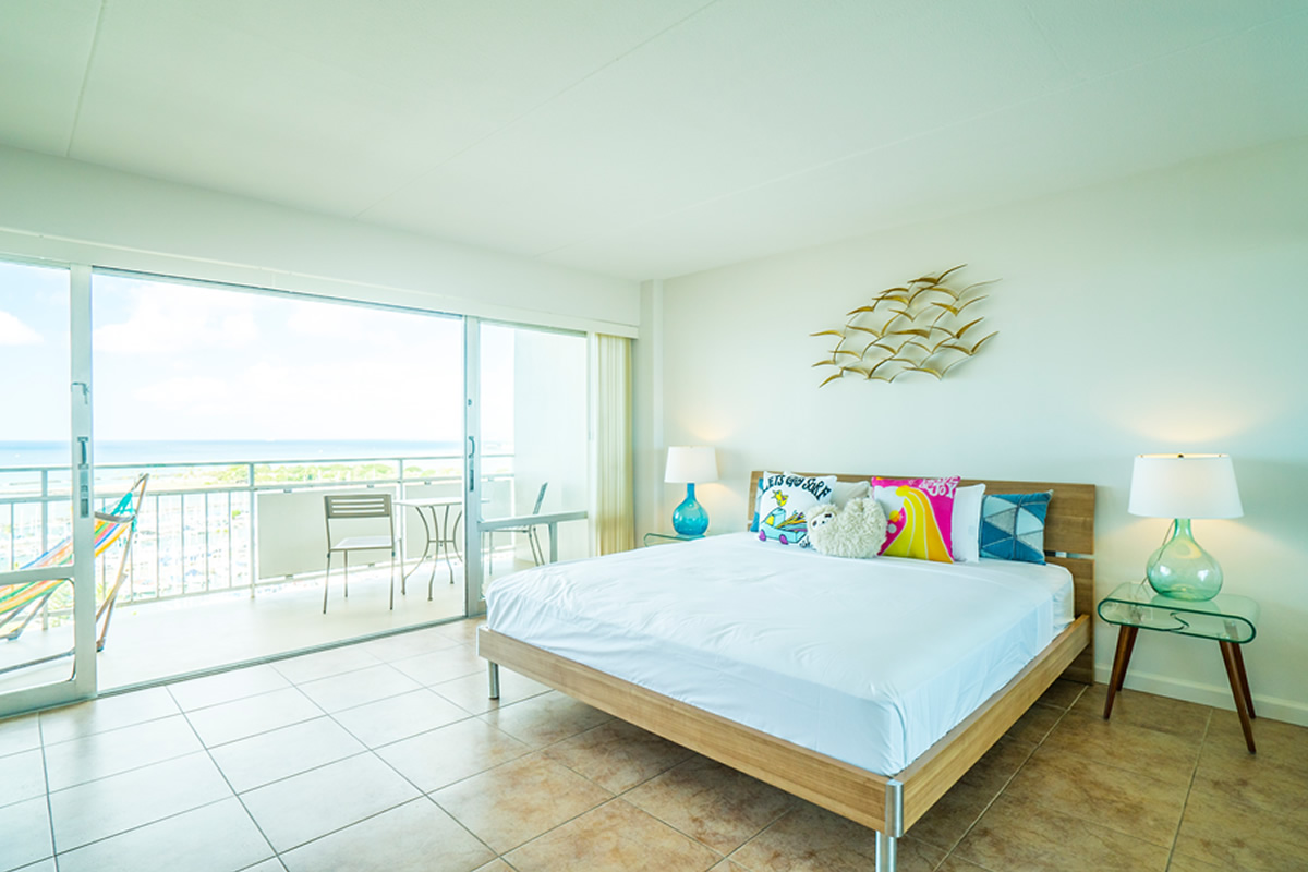 - 海とダイヤモンドヘッドの景色は今も変わらない。購入当時はコロニーサーフはそれほど有名でもなく売りがあった。この部屋をみた瞬間、改装すれば思い通りの部屋になると直感し、提案。